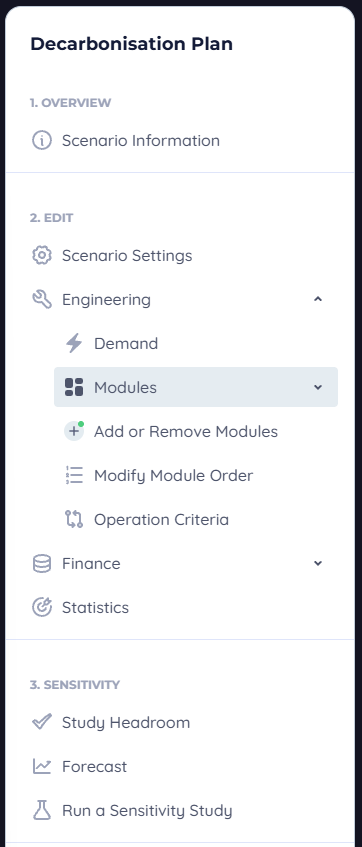 In this example, we are going to be creating a simple solar model. Enable the relevant module and fill out the form. “PnL Defaults” are a selection of commonly used profit and loss entries used in each simulation module, these populate enabled modules when you create the scenario.